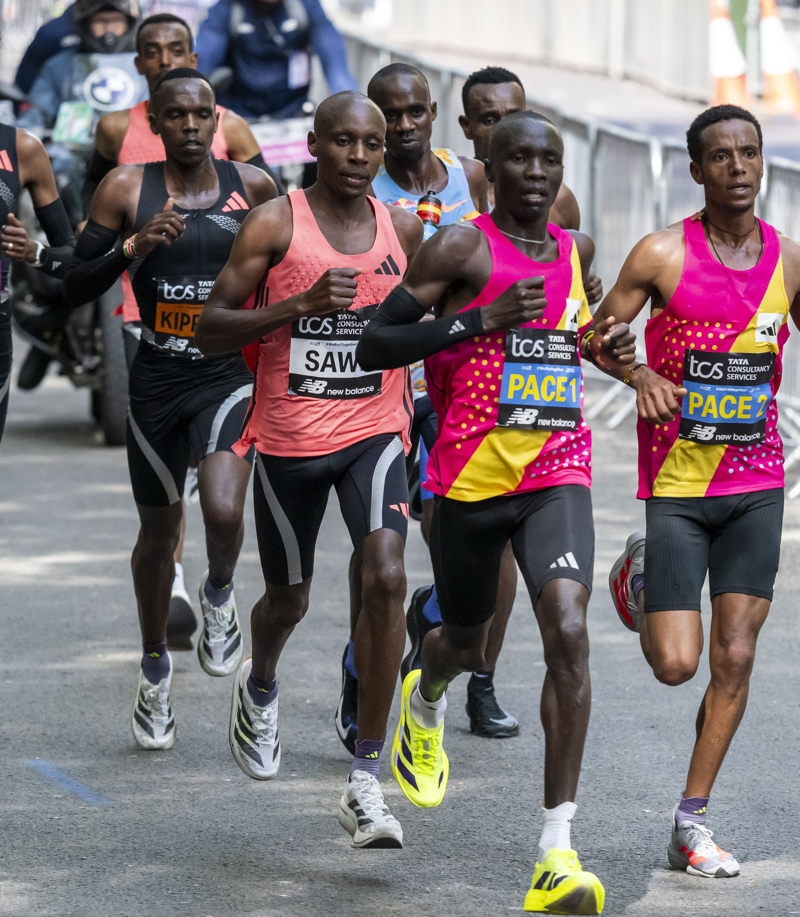 月26日,肯尼亚选手萨维(左三)在比赛中。\n 当地时间4月26日,在2026伦敦马拉松男子精英组比赛中,肯尼亚选手塞巴斯蒂安·萨维以1小时59分30秒的成绩打破男子马拉松世界纪录,成为首位跑进全程马拉松两小时大关的运动员。\n 新华社发(史蒂芬·程摄)