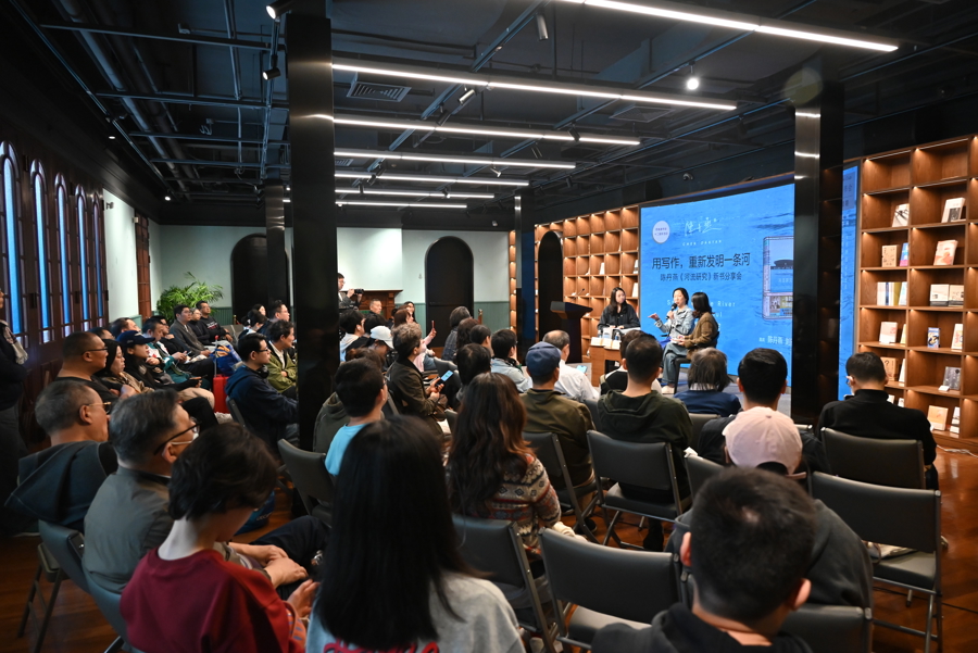 随后,以“用写作,重新发明一条河”为主题,一场围绕陈丹燕新作《河流研究》的文学对谈开启。由上海文艺出版社出版的《河流研究》缘起于陈丹燕参与黄浦江45公里公共空间考察的经历。作品以河流为镜,照见上海的精神底色与成长轨迹,为上海城市文化建设留下一份文学样本。“思南文学之家刚开张时,我就在这里做过读者会,已经很多年。”陈丹燕感慨,“我们跟思南读书会在一起度过了生命中非常安静和美好的时刻。”